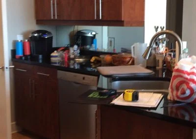Highrise kitchen in a beautiful Downtown Atlanta condo Geometric Kitchen Backsplash Hallway Floor Tiles Installing Floor Tiles Installing New Floor Kitchen Cupboard Cabinets Kitchen Peninsula Cabinets Kitchen Storage Small Corners Large Tiles In Small Spaces Large Tiles Small Corridor Maximize Kitchen Space Modern Kitchen Design New Floor In Pantry New Kitchen Design Ideas New Tile Floor In Flat Pattern Tiles In Kitchen Small Kitchen Ideas Small Kitchen Renovation Ideas Small Pantry Ideas Wood Look Parquet Porcelain Wood Patterned Tiles Kitchen Before Reno Before Kitchen Cabinets Before Kitchen Design